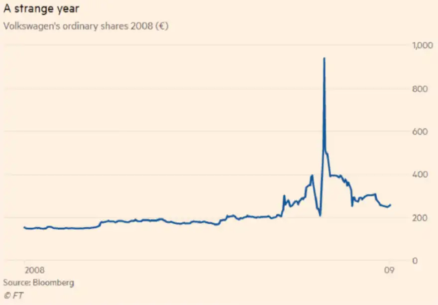 Volkswagen briefly became the world’s most valuable company when its share price hit €1,005.
