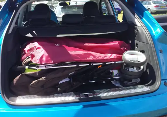 The rear seats fold flat to increase the 420-litre boot to 1,325-litres but the shape of the boot is quite problematic as it is slanted rather than box shape at the rear so you need to plan how to fill up the boot. Fitting in a couple of suitcases, bags and a pushchair and it only just about went in, and that was for jsut two adults and a baby. There is a retractable luggage cover which helps to cover up any possessions you have in the boot and the powered tailgate helps when you have your hands full.